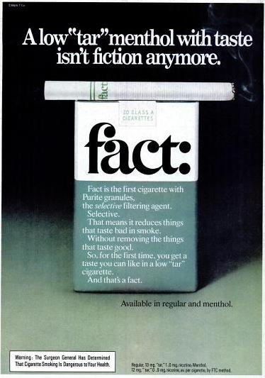 Fact_Cigarettes_1976 Published July 29, 2011 at 374 × 533 in Rad Ads: Blondes Selling Booze (’76) It’s a Fact that no one remembers this brand