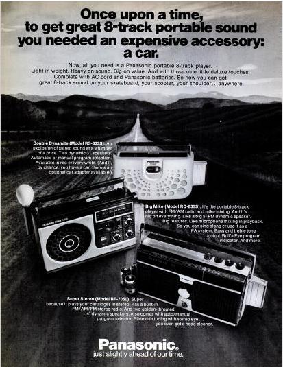Panasonic_8-Track_Ad_1976 Published July 29, 2011 at 413 × 535 in Rad Ads: Blondes Selling Booze (’76) Portable 8-Track players. Now with 100% less Chevy Van.