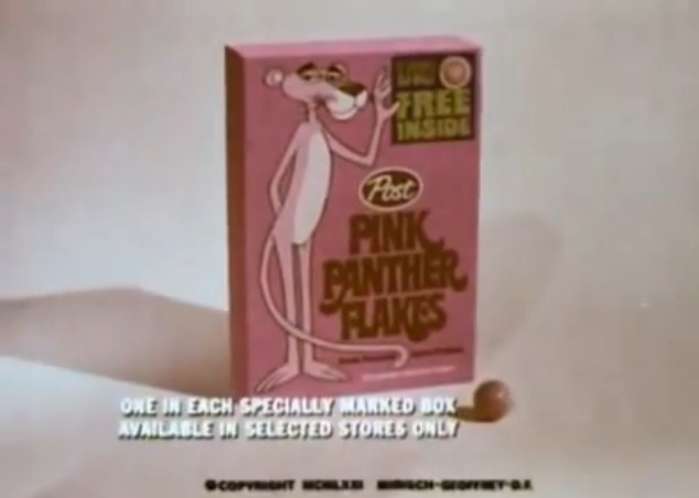 Pink_Panther_Flakes_cereal_Post_1970s Published July 11, 2012 at 634 × 452 in 70s Spots: Pink Panther Flakes cereal Post’s Pink Panther Flakes, early 1970s