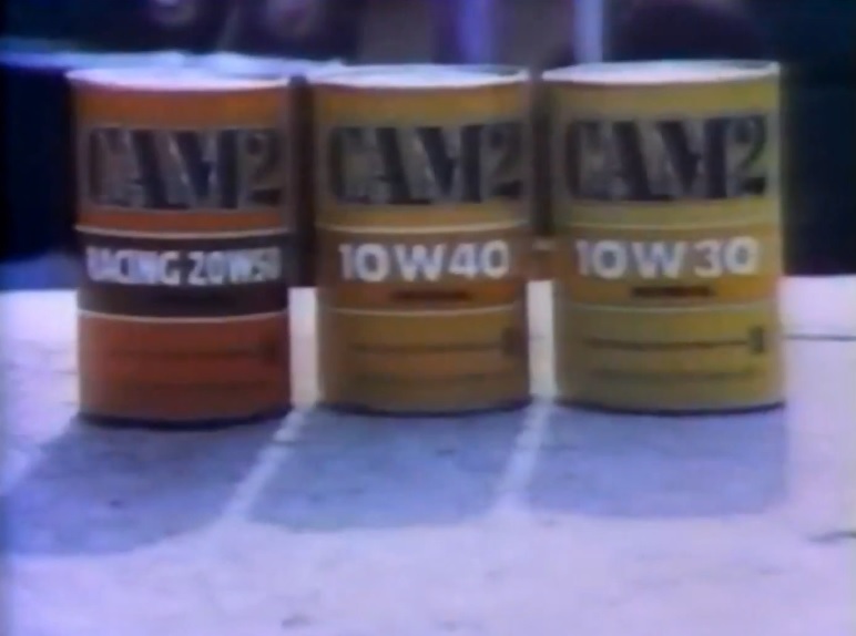 CAM2_Motor_Oil_Cans_1977 Published December 13, 2013 at 772 × 574 in Daily 70s Spot: CAM2 Motor Oil ‘Tough’ (1977) Go ahead, fall in love with CAM2 cans. (CAM2 commercial, 1977)