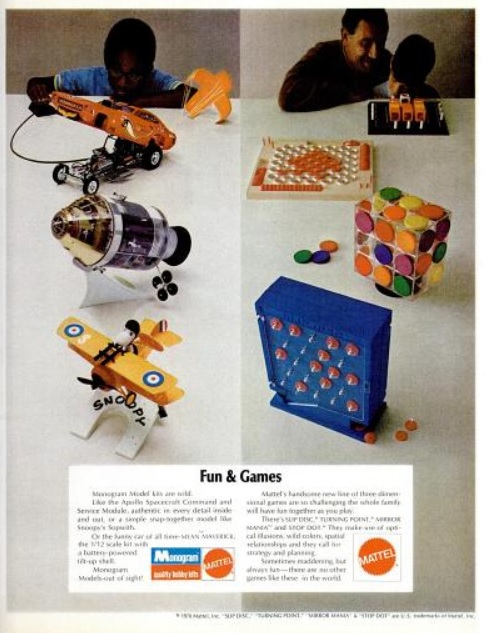 Mattel_Fun_And_Games_LIFE_Nov_13_1970 Published February 6, 2014 at 495 × 633 in Daily 70s Ad: Mattel – Monogram Model Kits (1970) Mattel – Monogram Model Kits. (‘LIFE’ magazine, Nov.13, 1970)