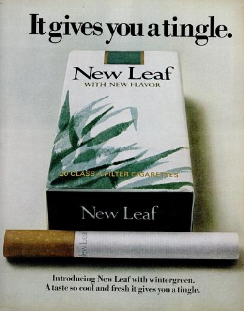 New_Leaf_Cigarettes_LIFE_Nov_13_1970 Published March 4, 2014 at 504 × 641 in Daily 70s Ad: New Leaf Cigarettes ‘Tingle’ (1970) New Leaf Cigarettes ‘Tingle.’ (‘LIFE’ magazine, Nov. 13, 1970)