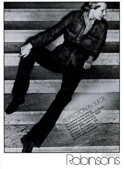 Robinsons_Suede_Orange_Coast_Magazine_Oct_1978 Published March 18, 2014 at 483 × 656 in Daily 70s Ad: Robinson’s ‘Perfection In Suede’ (1978) Robinson’s ‘Perfection in Suede.’ (‘Orange Coast’ magazine, Oct. 1978)