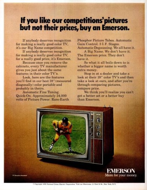 Emerson_TV_LIFE_Nov_13_1970 Published April 3, 2014 at 492 × 636 in Daily 70s Ad: Emerson TVs ‘A Better Buy’ (1970) Emerson TVs ‘A Better Buy.’ (‘LIFE’ magazine, Nov. 13, 1970)