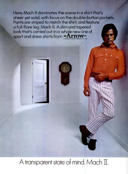 Arrow_Shirts_Mach_II_Flying_June_1970 Published June 4, 2014 at 520 × 706 in Daily 70s Ad: Arrow Shirts ‘Mach II’ (1970) Arrow Shirts ‘Mach II.’ (‘Flying’ magazine, June, 1970)