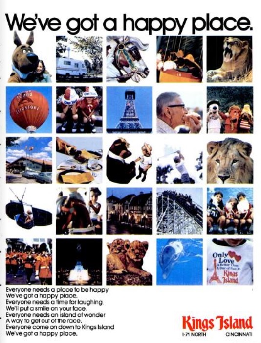 Kings_Island_Happy_Place_Cincinnati_May_1975 Published June 11, 2014 at 534 × 700 in Daily 70s Ad: Kings Island ‘Happy Place’ (1975) Kings Island ‘Happy Place.’ (‘Cincinnati’ magazine, May, 1975)