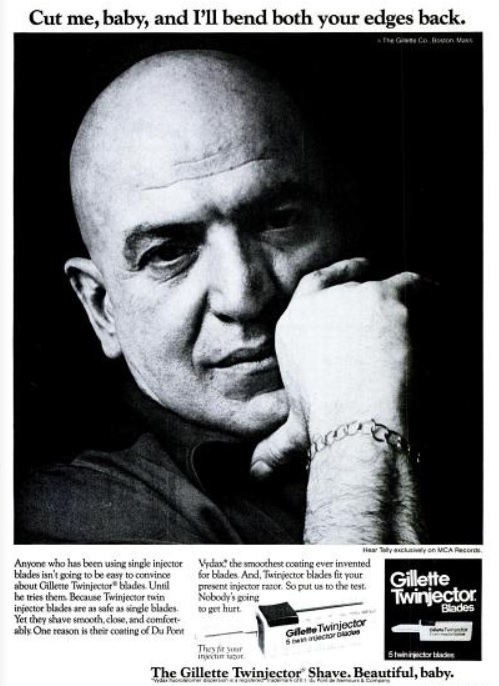 Telly_Savalas_Gillette_Popular_Science_August_1975 Published August 11, 2014 at 499 × 686 in Daily 70s Ad: Telly Savalas For Gillette (1975) Telly Savalas For Gillette. (‘Popular Science’ magazine, August, 1975)