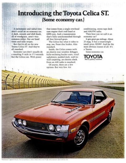 Toyota_Celica_ST_LIFE_August_20_1971 Published August 23, 2014 at 477 × 618 in Daily 70s Ad: Toyota Celica ST (1971) Toyota Celica ST. (‘LIFE’ magazine, August 20, 1971)