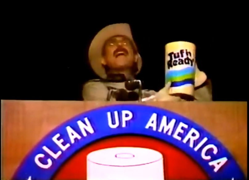Your attention please. “Teddy Roosevelt” is here to extol the virtues of Tuff ‘N Ready paper towels. How can you resist such zeal?