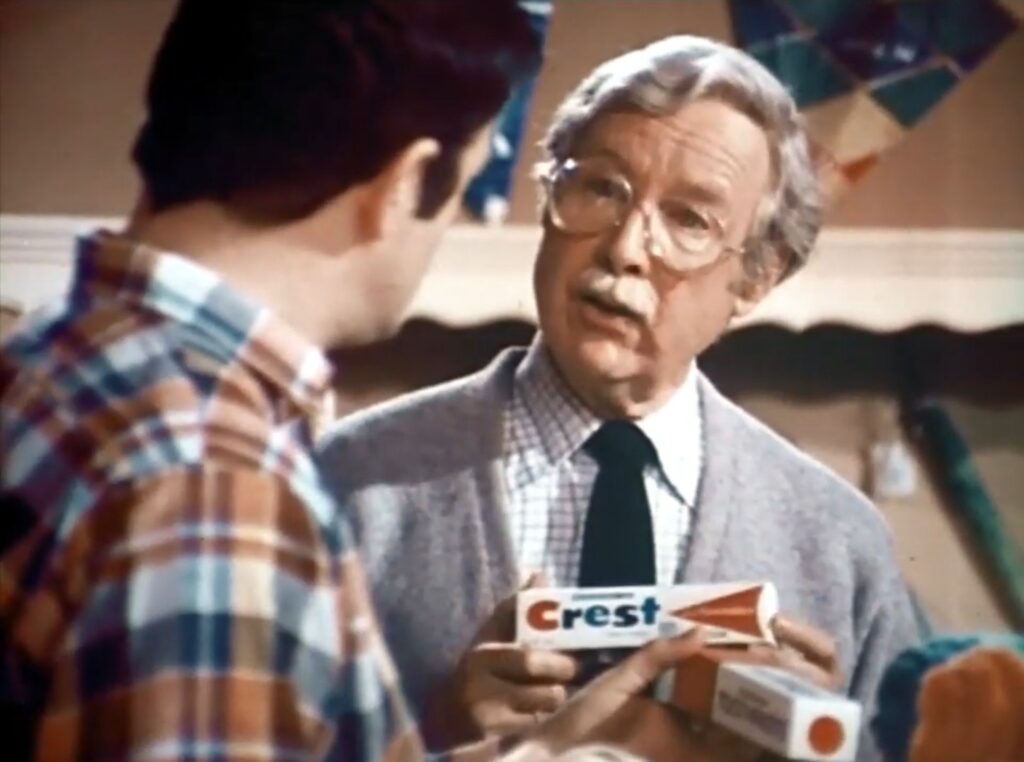 Crest Toothpaste commercial featuring spokesperson Mr. Goodwin (Arthur O’Connell), Fred (John Erwin), and Gracie (Kit Smythe). Spot aired in the early 1970s (best guess 1971-74).