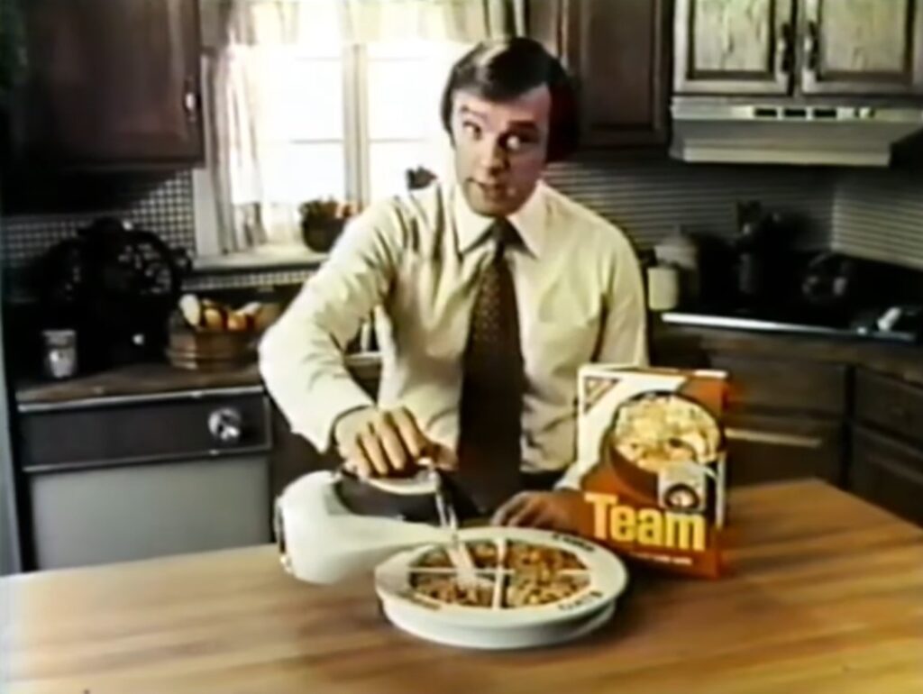 A very merry Sunday to you all. Today, I’ve got a sextet of vintage commercials lined-up for your viewing pleasure, starting off with a spot for Nabisco’s Team Flakes cereal.