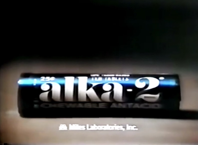 Here’s two spots for a new product from Alka-Seltzer: Alka-2. No need for any of that “plop plop fizz fizz” business – just pop ’em in your mouth and chew. The commercials aired in June of 1977.